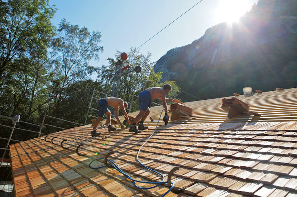 Nicht nur der Ort ist geschichtsträchtig, auch die Arbeits- und Anreisebedingungen sind einzigartig: Die Handwerker kommen jeden Tag über den Urnersee mit den Schiff zur Arbeit, das Material wird mit einem eigens für die Bauarbeiten erstellten Lastenlift transportiert. Und die zahlreichen Rütli-Besucher begutachten täglich den Baufortschritt.