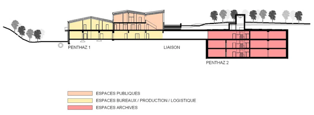 Das Projekt besteht aus dem Neubau eines unterirdischen Archivgebäudes (Penthaz II) sowie der Umnutzung und Sanierung des bestehenden Gebäudes (Penthaz I). Das Gebäudekonzept des Archivgebäudes erlaubt auch eine spätere Erweiterung, um den zu erwartenden Bestandeszuwachs ab dem Jahr 2020 aufnehmen zu können und ermöglicht dadurch dem Bund die langfristige Sicherstellung des audiovisuellen Erbes der Schweiz.