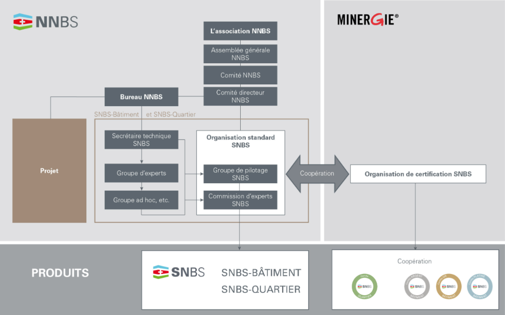 Der Vorstandsausschuss hat gemäss dem Vereinsreglement insbesondere die Umsetzung von Strategien, Programmen und Projekten in seinem Aufgabenbereich. Er ist die oberste Entscheidungsinstanz bei allen Fragen zum SNBS. Die Steuerungsgruppe SNBS wiederum ist Teil der Standardorganisation des SNBS und übernimmt die strategische Verantwortung auf technischer Ebene.