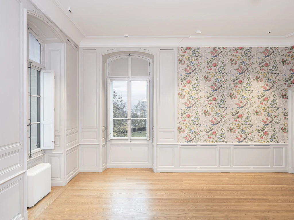 Ich würde sagen, dass die Vorteile die Einschränkungen überwiegen. Natürlich hätte ich gern eine Klimaanlage, mobile Wände in meinen Ausstellungsräumen und grössere Flächen. Anstatt mich zu beklagen, ziehe ich es aber vor, den Nutzen in dem zu sehen, was diese alten Mauern zu bieten haben: Charakter und Geschichte, Räume mit Wohncharakter (einst lebte eine Familie im Schloss), das Privileg, mit der Natur in Verbindung zu sein, die Tatsache, dass das Schloss von einem Gemüsegarten umgeben ist, den englischen Park, eine Streuobstwiese und einen ehemaligen Wassergraben. Vom Fenster in meinem Büro aus höre ich die Rufe der Dohlen und den Wind in den Blättern der hundertjährigen Platanen.