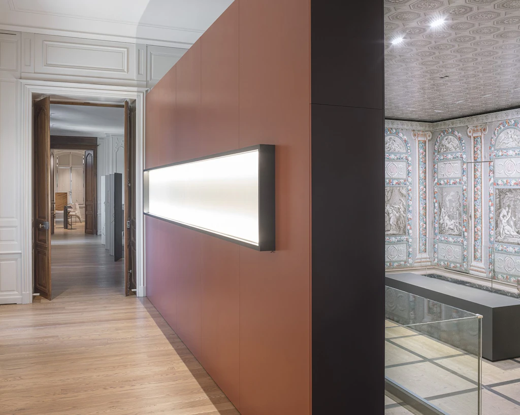 Für die Renovation der Dauerausstellungsräume arbeiteten die Architekten (DOM + werkbüro Association d’architectes) mit den Szenografen (Catherine Nussbaumer und Atelier Oï) sowie mit der Museumsdirektion und der Leitung des Technikteams zusammen. Die Böden, Wände und Decken wurden in Übereinstimmung mit den einzelnen szenografischen Konzepten renoviert. Eine neue Beleuchtung trat an die Stelle der Schienenbeleuchtung, welche sorgfältig abmontiert wurde, um sie in einigen Räumen in die bestehende Beleuchtung zu integrieren. Sämtliche Spots wurden aus Energieeffizienzgründen systematisch durch LEDs ersetzt. Es war der Wunsch der Museumsszenografen, dass parallel dazu natürliches Licht in die neuen Ausstellungsräume einfällt. Dafür wurden spezielle, für die Ausstellungsbedingungen geeignete Filter auf den Fenstern angebracht.