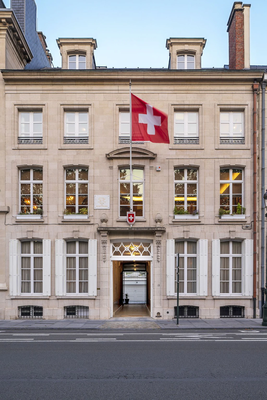 Die im Rahmen der Erhaltung von Bauten im Ausland durch die Schweizer Eidgenossenschaft erfolgte Renovation der Botschafterresidenz an der Rue Ducale ist abgeschlossen. Das im denkmalgeschützten Bereich des «Quartier du Palais Royal» befindliche neoklassizistische Gebäude wartet mit einem üppigen Dekor auf, in dem sich verschiedene Materialien und Texturen sorgfältig inszeniert vermischen. Zwischen geschwungenen Linien und geometrischen Elementen stechen dabei als Herzstück die im Speisesaal befindlichen Goldledertapeten aus dem 18. Jahrhundert hervor, welche schwere Schäden aufwiesen. Die Erhaltung dieser Leder-Reliefs stellte den Ausgangspunkt für weiterreichende Überlegungen zur Sanierung des Gesamtgebäudes dar. Durch die Sanierung konnten nicht nur Wärmeverluste begrenzt werden, es wurden unter Berücksichtigung der Besonderheiten dieses historischen Gebäudes auch die Privaträume des Botschafters wohnlicher gestaltet und die Arbeitsräume mit mehr Komfort ausgestattet.