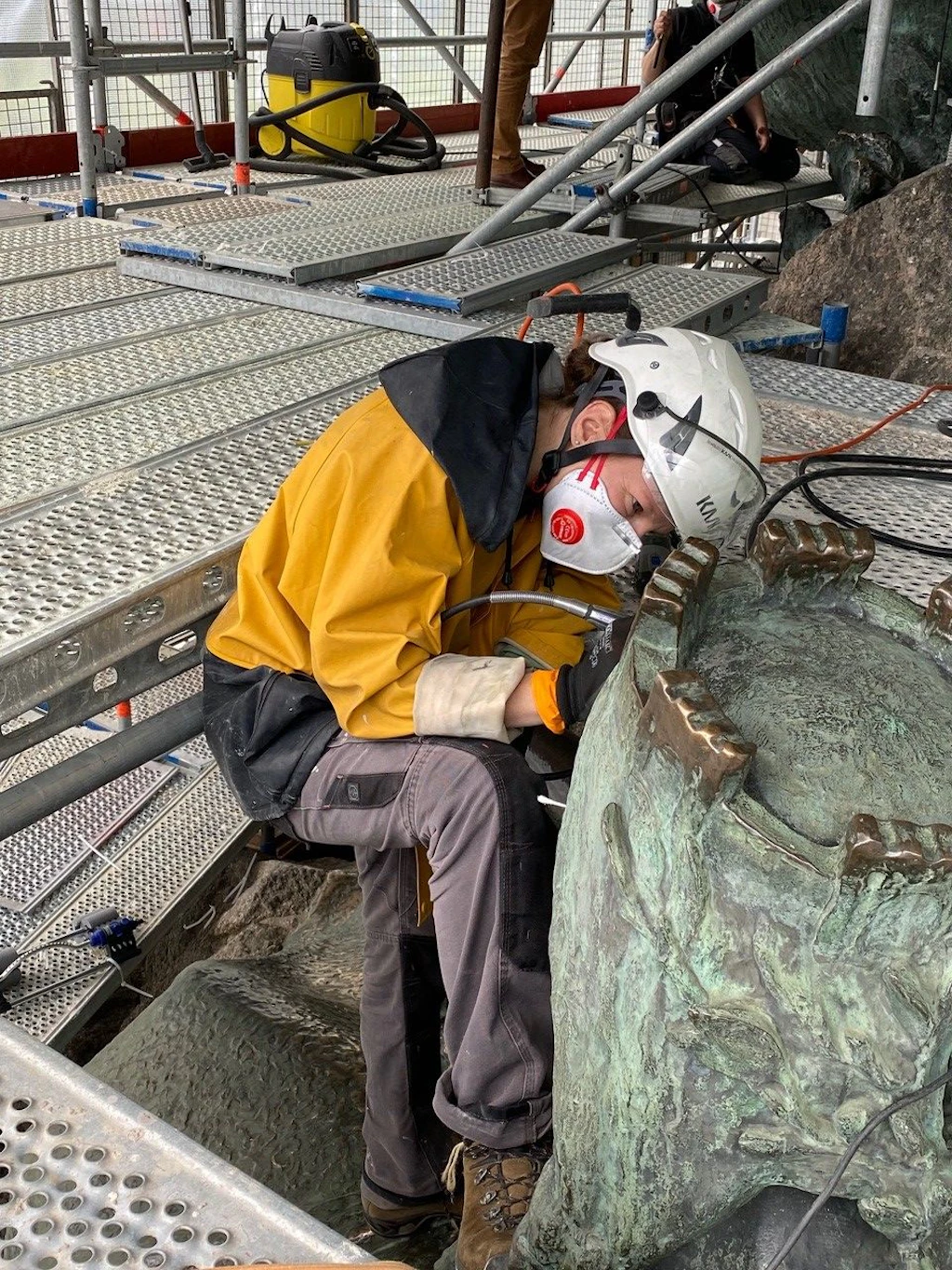 Ein nicht alltägliches Projekt: Für die Restaurierung des Weltpostdenkmals wurde ein neuartiges nachhaltiges Verfahren gewählt, nämlich die Behandlung mittels eines Pilzes, einer so genannten Bio-Patina.