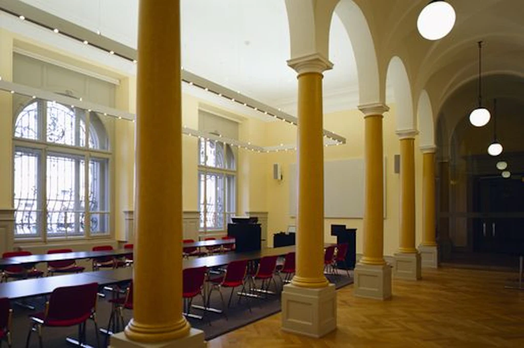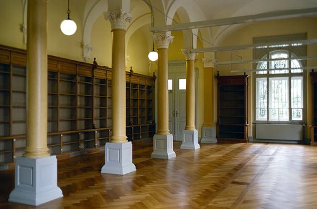 Die Publikumsräume im Erdgeschoss, der Lesesaal, der Mehrzwecksaal, der Konferenzraum, die Sanitärräume und die Infrastruktur (u.a. Multimediainstallationen) wurden den aktuellen Bedürfnissen der Nutzer angepasst und innerhalb der historischen Bausubstanz unter strengen denkmalpflegerischen Vorgaben aufgefrischt. Man entfernte die Spannteppiche in den Besucherräumen, um die alten Parkettböden wieder zum Vorschein zu bringen. Zusammen mit der Ergänzung der Brusttäfer strebte die Sanierung so einen möglichst originalen Ausdruck der Besucherräume an. Die Beleuchtung hingegen steht als zurückhaltendes, modernes Element in bewusstem Kontrast zur ursprünglichen Bausubstanz.