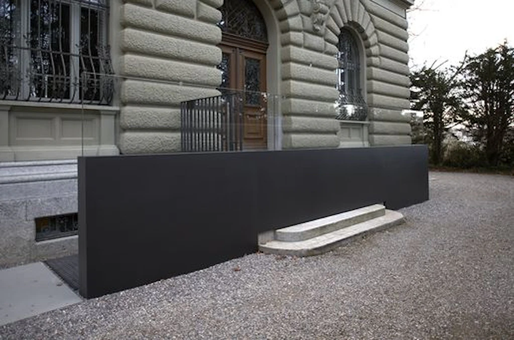 Ein neuer Aussenlift, der beim Zugang ein Halbgeschoss überwindet, nimmt in zeitgemässer Weise die Anliegen der Denkmalpflege auf und macht das Gebäude zu einem vollumfänglich behindertengerechten Bau.