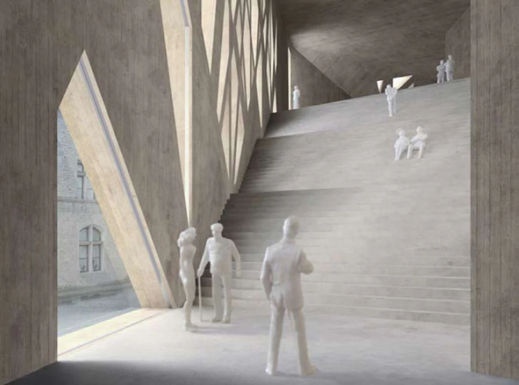 Der Erweiterungsbau bietet einen dramaturgisch expressiven Weg an, einen Weg durch unterschiedlichste räumliche und zudem flexibel bespielbare Situationen. Hier werden vor allem Wechselausstellungen stattfinden und es entstehen daher Räume, die komplementär zu den Altbauräumen genutzt werden können: grosse, flexible ‚Werkhallen', die unterschiedlichste Ausstellungsformen zulassen.
