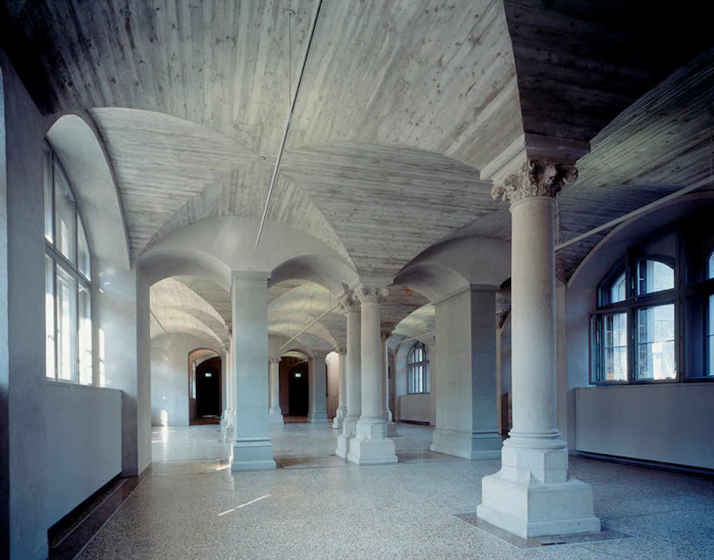 Die abgebrochene Decke wurde durch neue Betongewölbe ersetzt, welche geometrisch dem Originalzustand entsprechen. Sie lassen höhere Traglasten zu, die den Anforderungen des Museumsbetriebs entsprechen, zudem gewährleisten sie die Erdbebensicherheit und nehmen Installationen wie Bodensteckdosen zur Versorgung der Ausstellungsflächen auf.