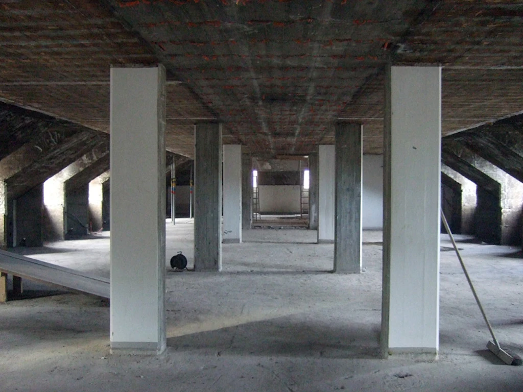 Nach einer Rückbauzeit von ca. 4 Monaten, in der alle Schränke, Türen, Trennwände, Böden und Decken sowie die gesamte Haustechnik entfernt und fachgerecht entsorgt wurden, glich das Verwaltungsgebäude einem Rohbau, in dem die ganze Tragstruktur ersichtlich war. Jedes Geschoss war praktisch ein Raum - grosszügig und lichtdurchflutet.