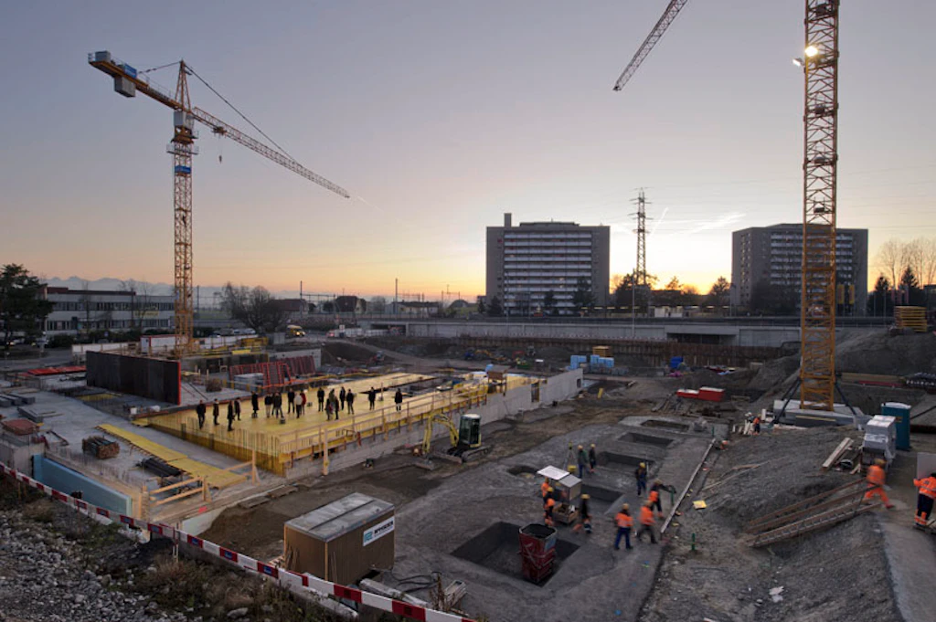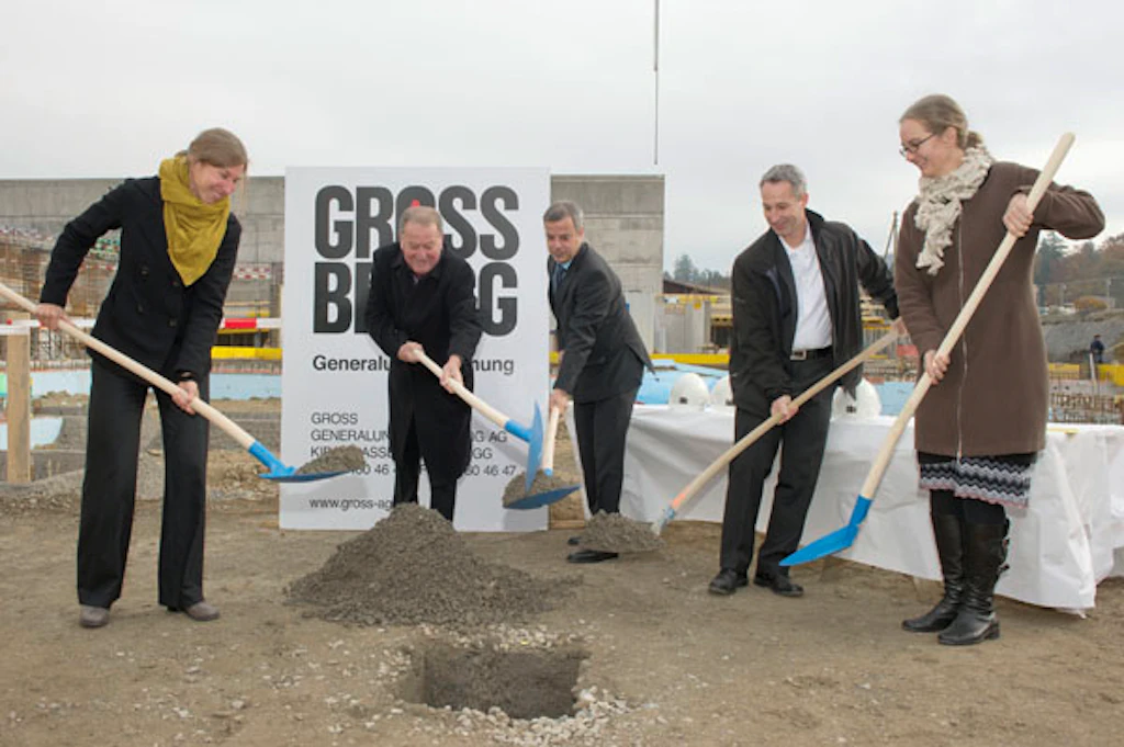 Nach dem erfolgreichen Abschluss der Altlastensanierung konnte per 25. Juli 2011 das Areal der Firma Gross Generalunternehmung AG aus Brugg für die Erstellung des neuen Verwaltungsgebäudes übergeben werden. Die Bauarbeiten begannen mit dem Erstellen der Rohplanie und dem Einbringen der ca. 65 Bohrpfähle für die Abstützung des Gebäudes in den schwierigen Baugrundverhältnissen. Nach Abschluss der Pfahlarbeiten folgten die Rohbauarbeiten für das Gebäude. Das neue Verwaltungsgebäude wird im Standard Minergie-P-Eco ® erstellt.