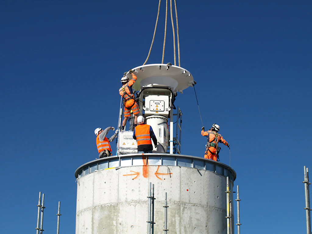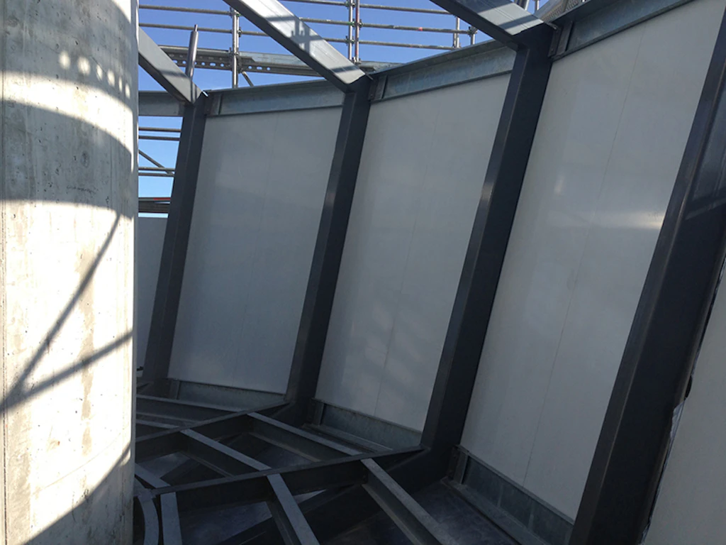 Am 4. Juli 2013 markierte die Aufrichte den Abschluss der Baumeisterarbeiten und den Beginn der Stahlbauarbeiten. Der Fassadenbau ist auf Ende Juli 2013 vorgesehen. Ein weiterer Meilenstein ist die Montage des Radom Anfangs August 2013.
