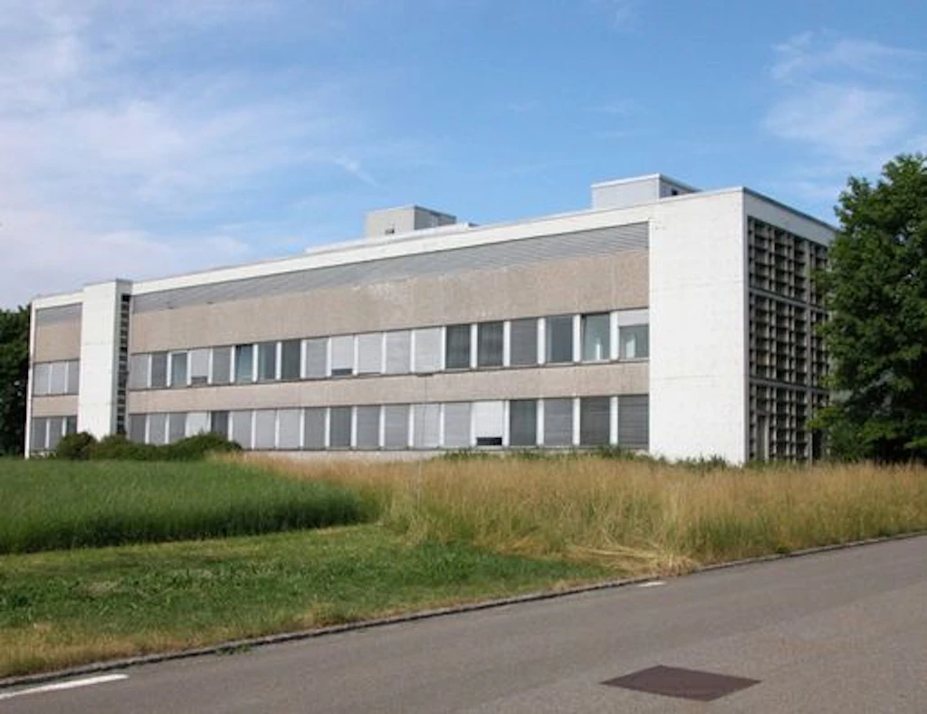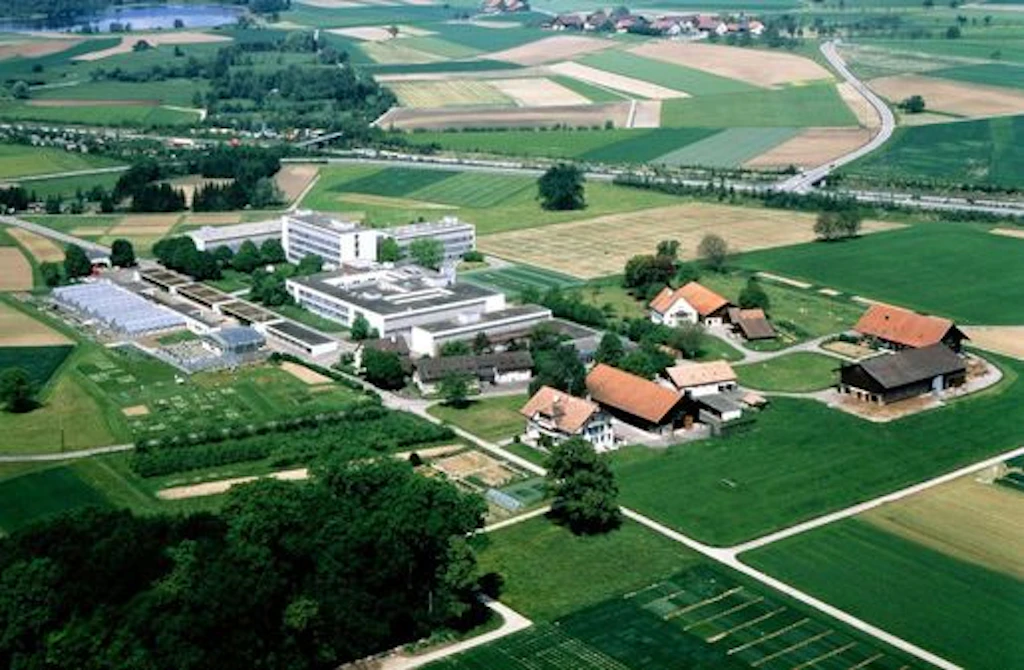 Die einheitlich gebaute Gesamtanlage steht auf dem freien Feld am Stadtrand von Zürich-Affoltern und besteht aus drei windmühlenartig angeordneten Büro- und Laborgebäuden, dem grossen Flachbau des Osttraktes und verschiedenen Nebengebäuden. Die Anlage ist klar und einfach kubisch in der typischen Architektur der 60-er Jahre gestaltet.