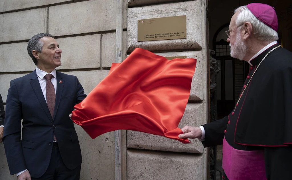 Quest'anno il giuramento delle 36 nuove guardie svizzere è stato accompagnato da un altro atto simbolico: presentando la prima ambasciata svizzera in Vaticano e inaugurandola simbolicamente, il presidente Ignazio Cassis ha anche ufficialmente normalizzato le relazioni diplomatiche tra la Svizzera e la Sante Sede. Dal 2014, la Svizzera era infatti accreditata presso la Santa Sede solo attraverso il suo ambasciatore in Slovenia. Tuttavia, il numero delle visite ufficiali di alto livello dalla Svizzera è notevolmente aumentato negli ultimi anni e richiede una costante preparazione diplomatica, supporto e successiva rielaborazione in loco. La nuova ambasciata svizzera presso la Santa Sede sarà anche responsabile delle relazioni diplomatiche con Malta e San Marino.