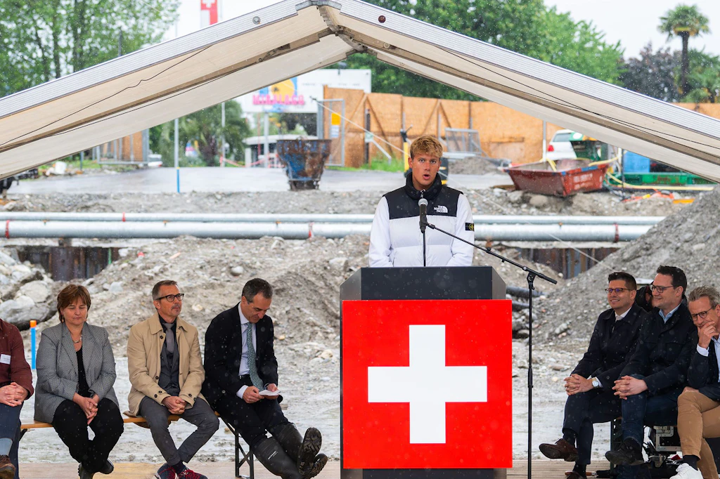 Alla posa della prima pietra della piscina coperta era presente anche il team di progettisti della cooperazione Studio Burkhardt + Stücheli Pestalozzi Schiratzki Architekten (COOPI). Nel 2017, il loro progetto per il nuovo centro natatorio, cui avevano dato il nome «RIMINI», ha vinto un concorso pubblico di progettazione. La loro costruzione si inserisce bene nell’ambiente circostante e dona una nota di carattere al grande parco del centro sportivo nazionale. La piscina coperta verrà costruita accanto al nuovo edificio con alloggi del CST, il cui completamento è previsto per la fine di luglio 2024. Alla fine della cerimonia, i circa 150 invitati hanno avuto l’opportunità di visitarlo.